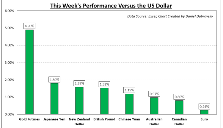 In response, the US Dollar turned lower as markets focused on a dovish Fed. Anti-fiat gold soared and is up about 8.9% this month. We have not seen this kind of performance since July 2020 during the Covid pandemic as central banks rushed to cut rates around the world. Meanwhile, the price of WTI crude oil collapsed 13.55% last week, the most since February 2020.