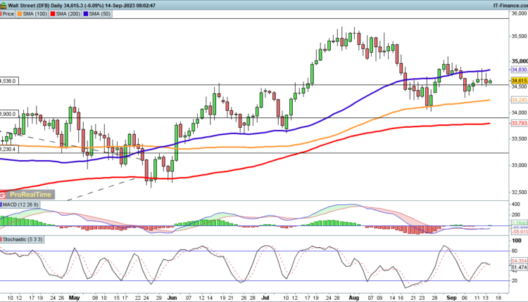 The index has spent the week trying to break higher, but gains above 34,700 have proven impossible to sustain. For the moment, while the buyers have not been able to seize control, sellers have been unable to drive the price lower, with 34,540 acting as an area of support. Last week’s low at 34,280, and then the late August low around 34,050 could provide support.