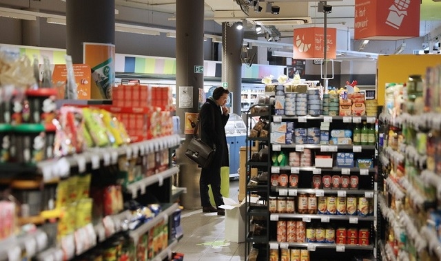 Người dân mua sắm tại siêu thị ở Brussels, Bỉ. (Nguồn: THX/TTXVN)