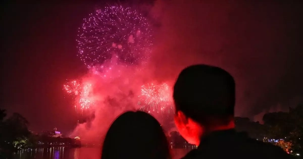 Du khách ngắm pháo hoa tại hồ Gươm, Hà Nội dịp Tết Dương lịch 2026.