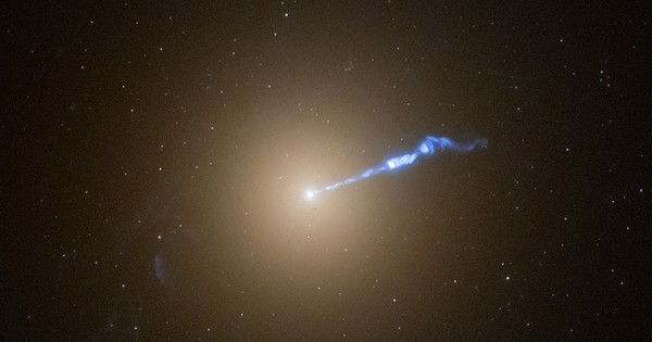 Hình ảnh chụp từ kính viễn vọng không gian Hubble về thiên hà khổng lồ M87 cho thấy một luồng plasma dài 3.000 năm ánh sáng bùng phát từ lỗ đen quái vật ở trung tâm của nó – Ảnh: NASA/ESA