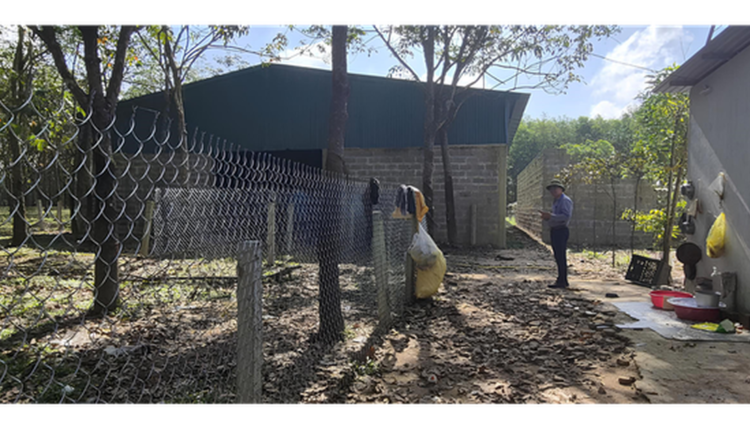 Quan sát thực tế cho thấy một số nhà kho, chuồng trại được dựng khá kiên cố nhưng bên trong hầu như trống trơn, ít dấu hiệu sử dụng. Nhiều công trình nằm giữa bãi đất trống, cỏ dại mọc um tùm, thi thoảng mới thấy người đến trông coi.