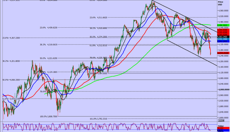 However we want to reverse in to a short on a break lower which can target 4130/20 (just to start with). Longs at 4220/4200 could see a good profit if the level holds, initially targeting 4285/95.