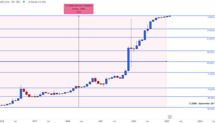 Since 2017, USD/TRY has risen consistently, climbing over 400% since the September low that year.