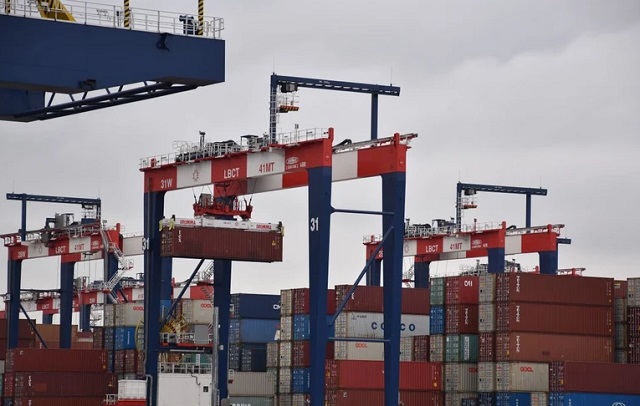 Cảng hàng hóa ở Long Beach, California, Mỹ. (Ảnh: THX/TTXVN)