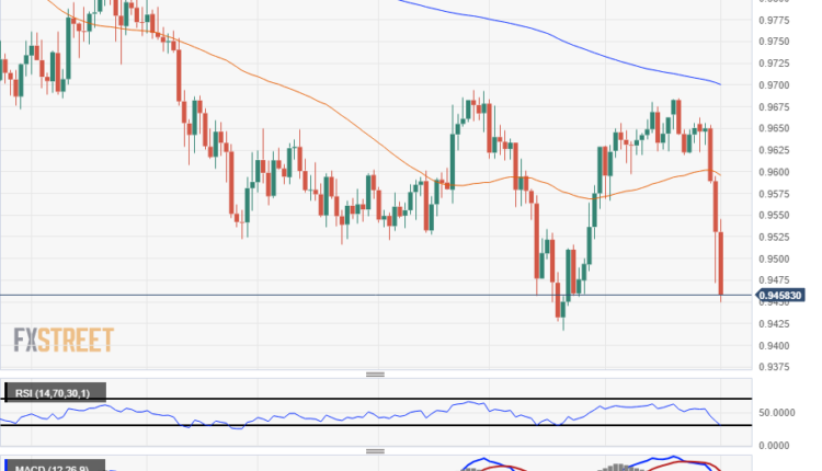 EUR/CHF chalks in a third straight day of losses as Euro declines into 0.9450 against the Swiss Franc
