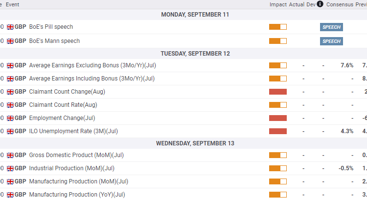 The economic calendar for the first half of next week is notably GBP-heavy, with very little meaningful releases from the EU side.