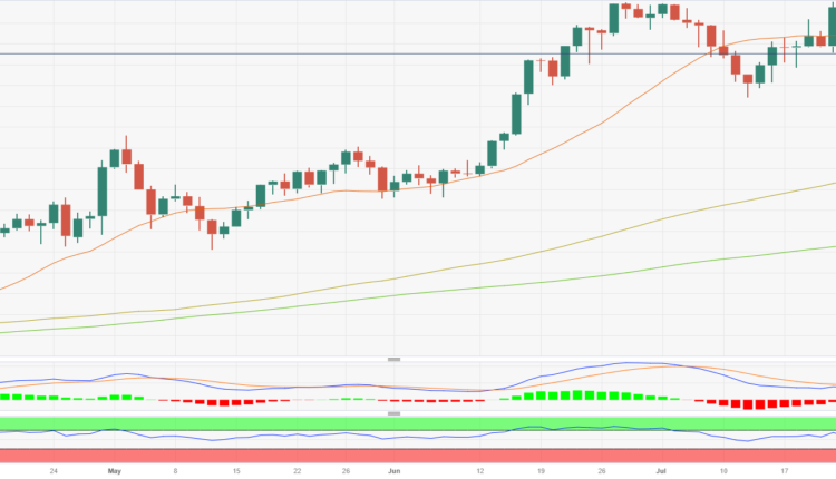 The daily candlestick chart shows that the EUR/JPY trades bullish, ending the week. The Relative Strength Index (RSI) is just slightly above the midline, with a steep positive slope of 90 degrees. The Moving Average Convergence Divergence (MACD) prints fading soft red bars indicating that bulls are quickly gaining ground. On the bigger picture, the pair trades above the 20-day Simple Moving Average (SMA), reinforcing a bullish momentum.