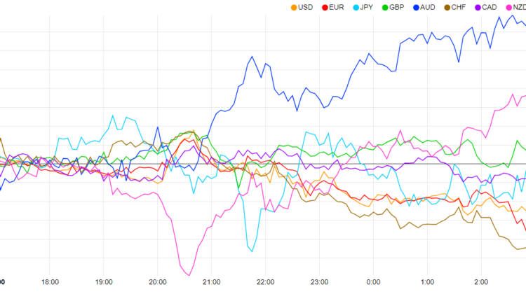 Currency Strength Chart: Strongest – AUD, Weakest – CHF.