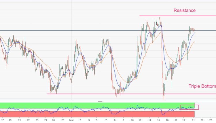EUR/USD has displayed sheer strength after a Triple Bottom formation on an hourly scale. A Triple Bottom is a bullish reversal chart pattern that indicates an absence of selling pressure in the major currency pair while testing previous lows. The shared currency pair is marching towards the potential resistance plotted from March 15 high at 1.0740.