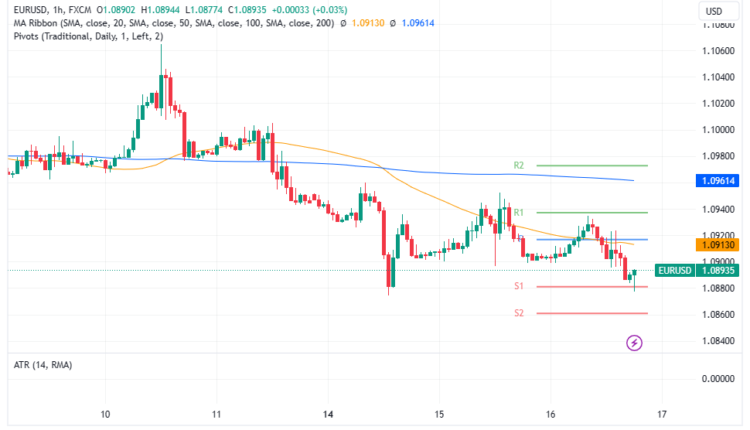 EUR/USD dropped below 1.0900 for the second straight day, as the latest Federal Reserve (Fed) monetary policy minutes began to show policymakers are split between overtightening while others prioritize the fight against inflation. The EUR/USD trades volatile, between the daily low of 1.0870s and the 1.0900 figure.