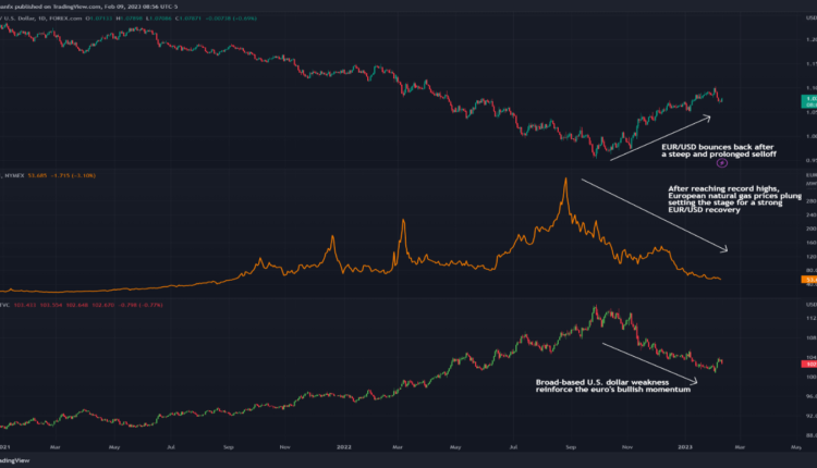 The euro resumed its advance on Thursday and traded around 1.0785 on the back of risk-on sentiment following a slight pullback in recent days. Taking a longer-term view, EUR/USD has staged a powerful rally over the past several months, rising more than 13% from the depths of a relentless bear market that saw the exchange rate fall below 0.9600 at the end of September last year. While broad-based U.S. dollar weakness in the FX space has contributed to the euro's rapid recovery, there is another catalyst worth mentioning: the plunge in natural gas prices.