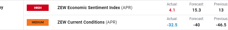 The latest German ZEW economic sentiment report shows optimism fading in April. The economic sentiment indicator fell to 4.1, missing expectations of 15.3 and last month’s reading of 13. According to ZEW President Professor Achim Wambach,