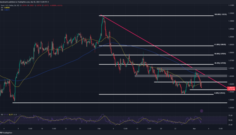 After failing to clear resistance in the 1.0690/1.0700 area earlier this week, EUR/USD has resumed its descent, breaking down one support after another, with bearish pressure accelerating on Thursday. If sellers retain control of the market, the next technical floor to consider is located near 1.0565, followed by 1.0535. On further weakness, the focus shifts to January’s low printed at 1.0480.