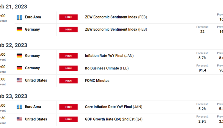 Meanwhile, for Europe, ZEW sentiment data for the Euro and Germany will help provide insight into how analysts expect the economy to perform over the next six months. While inflation data could help set the stage for the ECB who are expected to raise rates by an additional 50-basis points (0.5%) in March.