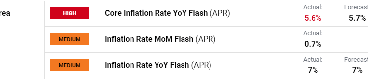 The core inflation rate in the Euro Area retreated slightly in April coming in at 5.6% in April down from last month’s print of 5.7%. The core CPI which excludes prices of energy, food, alcohol and tobacco went down 0.1% following a rise which started in June 2022 when core CPI rested at 3.7%. The core number remains uncomfortably high and despite signs of a slowdown in consumer spending and tightening conditions inflation remains stubborn.