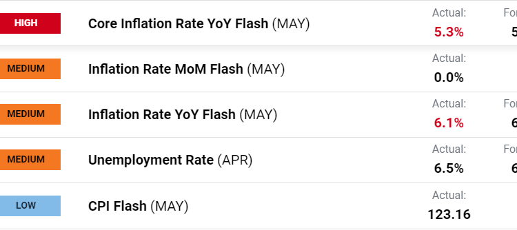The core inflation rate in the Euro Area is estimated to have retreated to 5.3% in May down from last month’s print of 5.6%. The core CPI which excludes prices of energy, food, alcohol and tobacco went down 0.3%, recording its lowest reading since January in what will most definitely be seen as a positive by the ECB.