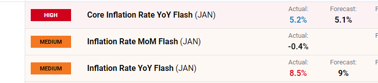 Energy is expected to have the highest annual rate in January – 17.2% compared with 25.5% in December – followed by food, alcohol, and tobacco – 14.1% compared with 13.8% last month.