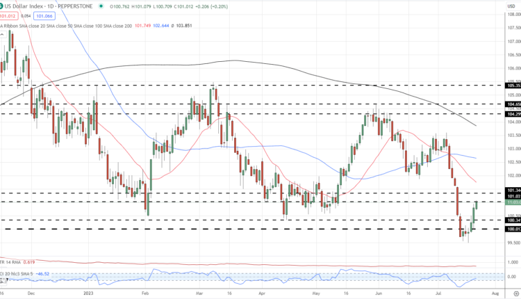 Ahead next week are two central bank policy meetings that will direct EUR/USD in the coming weeks. The Federal Reserve is expected to announce a 25 basis point rate hike on Wednesday, July 26 at 19:00 UK time, while the European Central Bank is also expected to lift rates by a quarter of a point the next day at 13:15 UK. Both central banks will have press conferences 30 minutes after their decisions are announced and these will be key for any clues to future action by both the FED and the ECB. It will be a volatile time for EUR/USD traders.