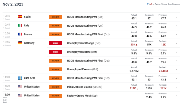 US labor data through the jobless claims print showed an increase relative to forecasts that could signal the beginning of an unwinding jobs market. Although there is minimal correlation between this report and the Non-Farm Payroll (NFP) figure tomorrow, coupled with the miss on ADP employment change yesterday, markets may be expectant of a weaker overall NFP release tomorrow.