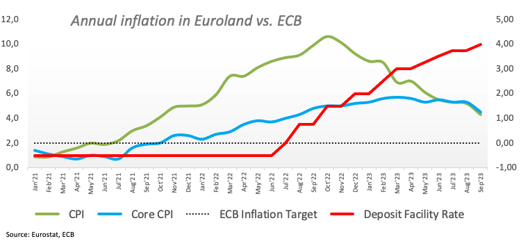 On the domestic calendar, the final Inflation Rate for September in the broader Eurozone saw the CPI rise 4.3% YoY and 4.5% YoY when it came to the Core CPI (consumer prices excluding food and energy costs).