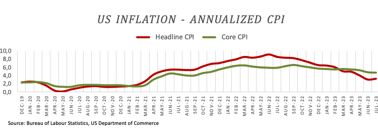 Apart from the CPI results in the US economic calendar, Initial Jobless Claims rose by 248K in the week to August 5. Later in the session, speeches by Philly Fed's Patrick Harker, who holds a voting position and is considered a hawkish voice, and Atlanta Fed's Raphael Bostic, another voting member for 2024 who also leans hawkish are also due.
