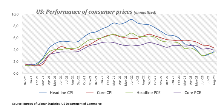 Meanwhile, the Greenback is experiencing a correction from its recent yearly highs around 106.80. It has convincingly breached the support level of 106.00, as indicated by the USD Index (DXY) in response to an improvement in risk sentiment and growing concerns about a potential government shutdown in the United States over the weekend.