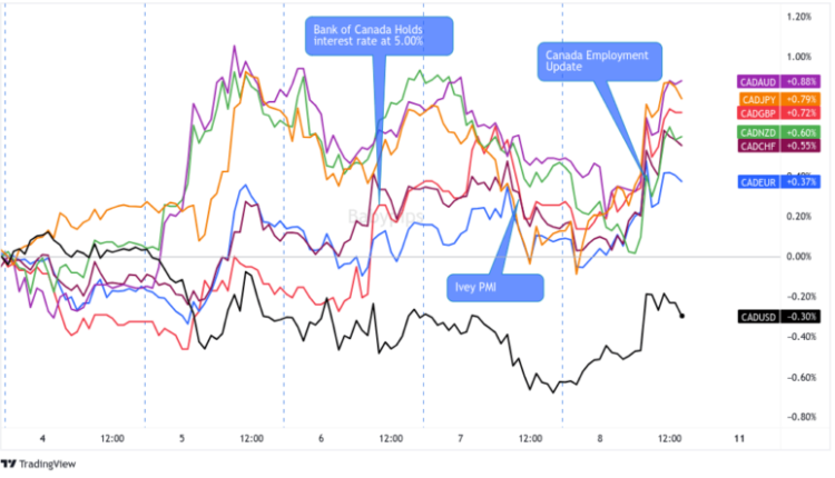 Overlay of CAD vs. Major Currencies Chart by TradingView