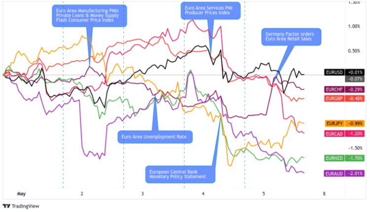 Broad risk sentiment leaned negative, likely due to fresh signals of possible peak global growth, most notably Chinese PMI moving into contractionary territory, falling German retail sales, and a spike in job cuts in the U.S. This may have influenced euro traders to focus more on weakening economic conditions in the Euro area rather than hawkish rhetoric from the ECB that week.