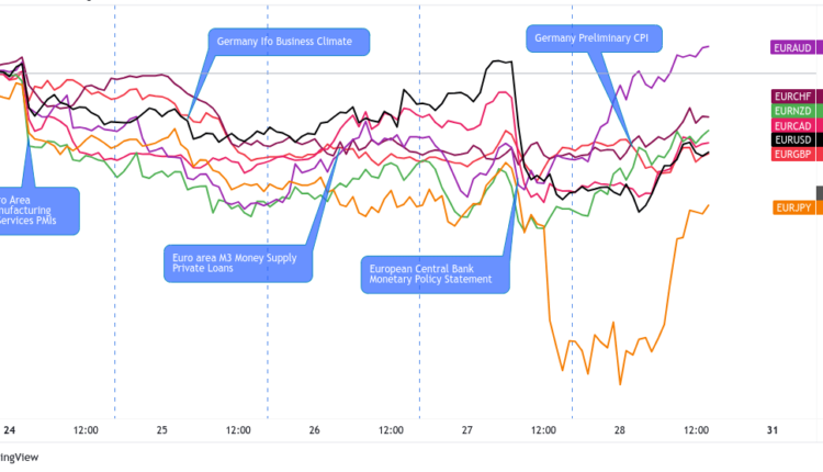 In this case, keep an eye out for long EUR plays against currencies with dovish central banks (JPY, NZD, CAD, AUD) or for those bogged down by weak flash PMI reports later in the week.