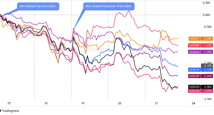 Overlay of NZD vs. Major Currencies Chart by TradingView