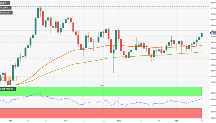 The AUD/JPY cross extends its upside for the sixth consecutive day during the Asian session on Friday. The cross trades around 95.31, gaining 0.36% on the day. The stronger-than-expected Chinese data boost antipodean currencies against its rivals.