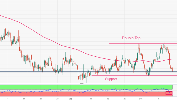 NZD/USD delivers a vertical sell-off after failing to break above the horizontal resistance plotted from September 29 high at 0.6050. The structure indicates a Double Top formation, which could be triggered after a breakdown below the crucial support of 0.5880.
