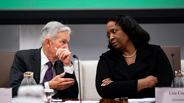 Jerome Powell, Chủ tịch Cục Dự trữ Liên bang Mỹ (Fed), bên trái, và Lisa Cook, Thống đốc Fed, tại cuộc họp công khai của Hội đồng Fed ở Washington, DC, Mỹ, vào thứ Tư, ngày 25/06/2025