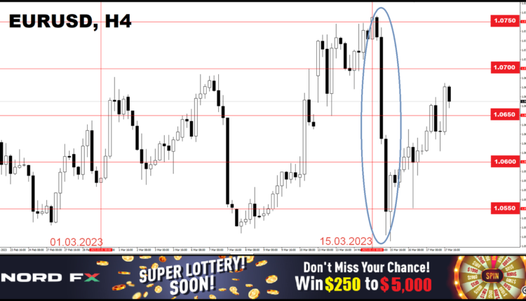 Credit Suisse's stocks fell more than 30%. But it didn't end there, and a wave of panic hit other major European banks. Societe Generale's shares fell by 12%, BNP Paribas – by 10%, Commerzbank – by 9%. In this situation, investors decided that the ECB would not dare to raise the rate by 50 basis points (bp), the likelihood of such a move dropped from 90% to 20%, which led to euro sales.
