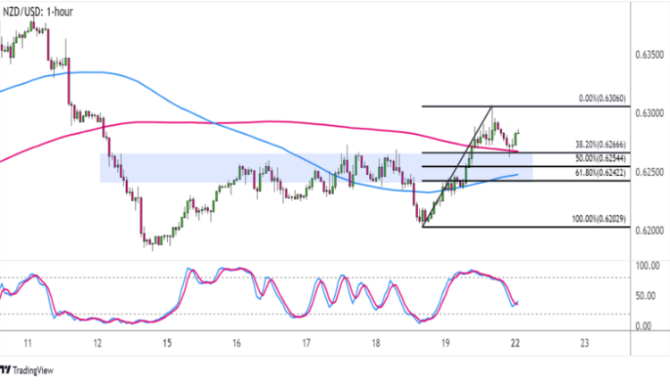 However, the .6300 major psychological barrier has proven to be a tough ceiling to break through, leading price to retreat to nearby support zones.