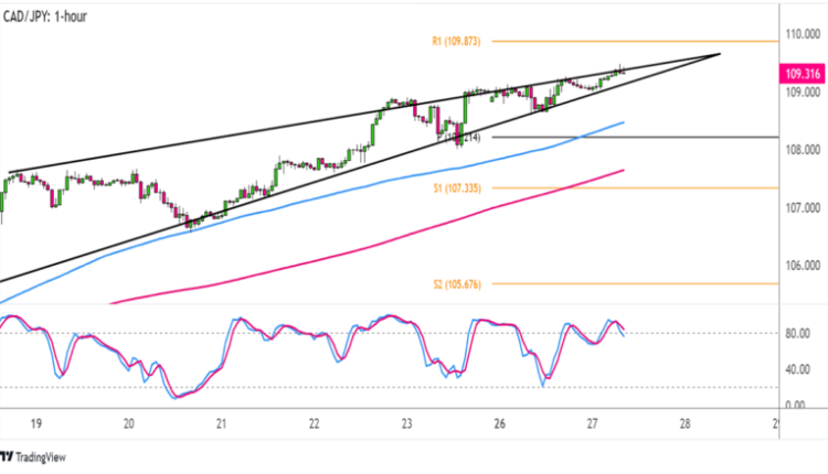 Stronger than expected CPI data and a break past R1 (109.87) near the 110.00 handle, on the other hand, could invalidate this setup.