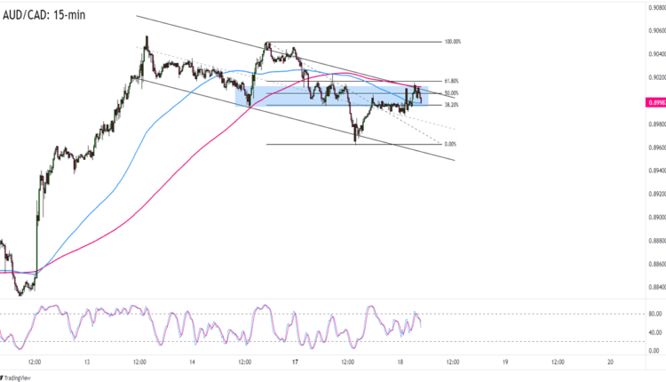 But if today’s U.S. retail sales data and other market themes encourage risk-taking, then AUD could attract enough buyers and push AUD/CAD above the descending channel pattern on the chart.