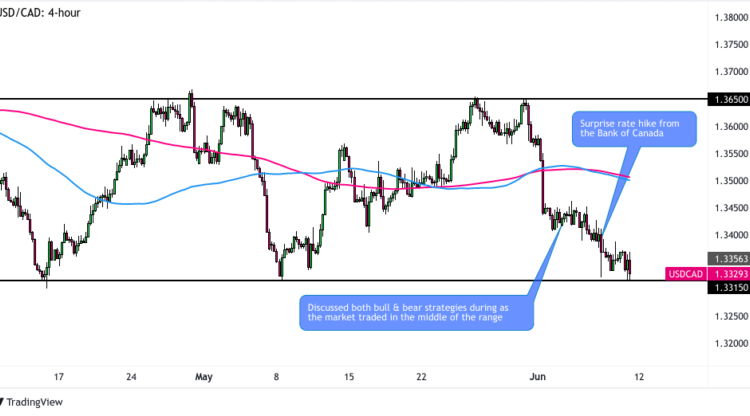 We didn’t take a strong directional lean, but we did discuss both bullish and bearish price scenarios to watch out for based on the outcome of the upcoming Bank of Canada monetary and interest rate policy statement.