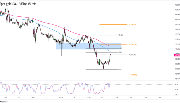 Look out for sustained trading above $1,900 for a potential move towards previous areas of interest like $1,911 or $1,920.