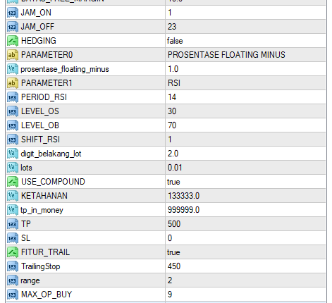 - PARAMETER0 = PROSENTASE FLOATING MINUS