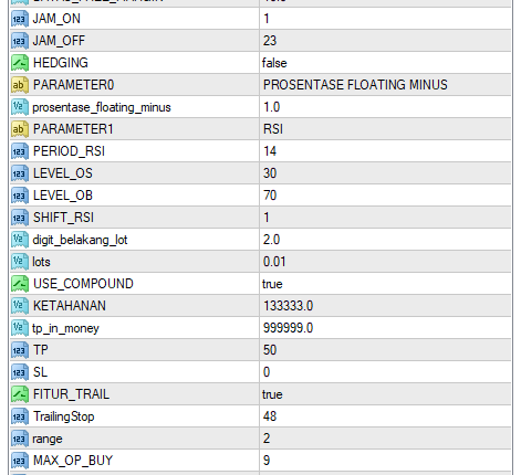 - PARAMETER0 = PROSENTASE FLOATING MINUS
