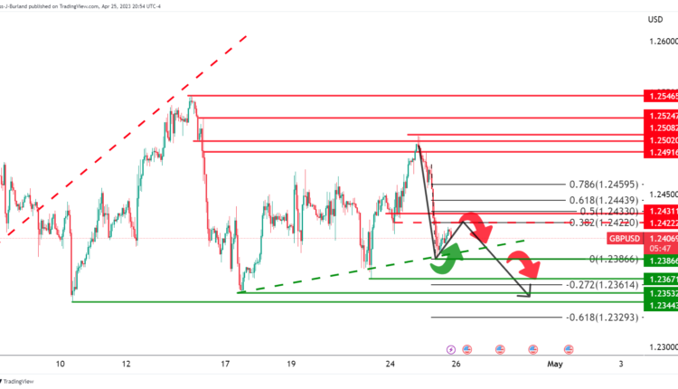 GBP/USD is currently correcting towards a 38.2% Fibonacci retracement level near the 1.2420s as it takes on resistance while the Greenback gives some ground back following Tuesday´s resurgence.
