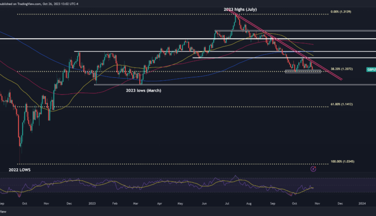 The British pound has been losing ground against the U.S. dollar since mid-July, with GBP/USD following a well-defined downtrend line and establishing impeccable higher lows and lower lows along its bearish trajectory, as shown on the daily chart below.