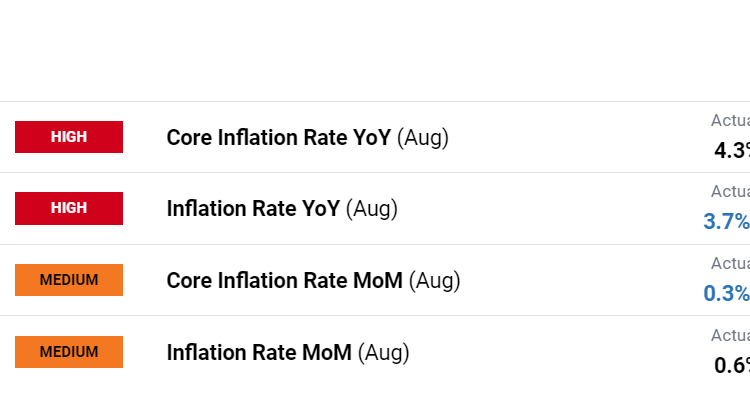 Headline CPI rose 0.6% on a seasonally adjusted basis in August, pushing the 12-month reading to 3.7% from 3.2% previously, one-tenth of a percent above consensus estimates. Meanwhile, the core gauge, which tends to reflect longer-term trends in the economy, climbed 0.6% monthly and 4.3% compared to the previous year, closely aligning with Wall Street’s projections in both instances.