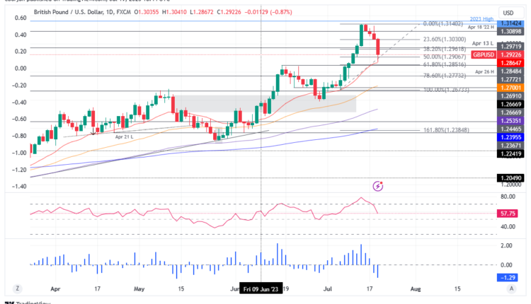 The Pound Sterling (GBP) attracts significant offers as the United Kingdom’s June inflation report has turned out much softer than expected. The GBP/USD pair slipped swiftly below the psychological support of 1.3000 after the data release, and it is expected to deliver more weakness. The monthly headline Consumer Price Index (CPI) expanded at a negligible pace of 0.1% in June as households and firms face the burden of higher interest rates from the Bank of England (BoE). Read More…
