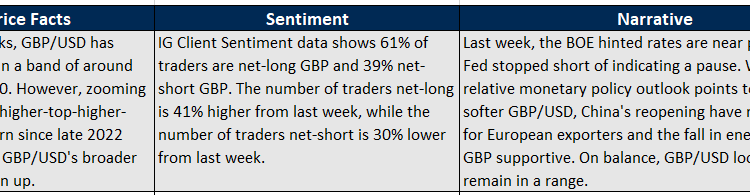 For now, though, the Plus Directional Movement Index (DMI) and Minus DMI remain below 25, pointing to range continued range conditions (seethe end of November update hereandmid-January here). Furthermore, the relative monetary policy outlook supports a range view with perhaps a softer GBP/USD bias. Last week, the Bank of England (BOE) hiked interest rates by 50 basis points, while the US Federal Reserve raised rates by 25 basis points, as widely expected.