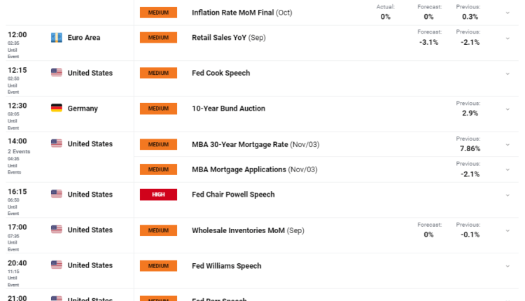 Later today, the focus will shift to the Federal Reserve once more with Fed Chair Jerome Powell under the spotlight. The speech will be dissected for any clues or potential changes to the prior narrative. Other Fed speakers will follow Mr. Powell but markets will likely keep their reactions aimed at the Fed Chair.