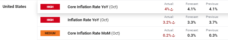 US Inflation Cools to 3.2% in October, US Dollar Sinks but Gold Gains