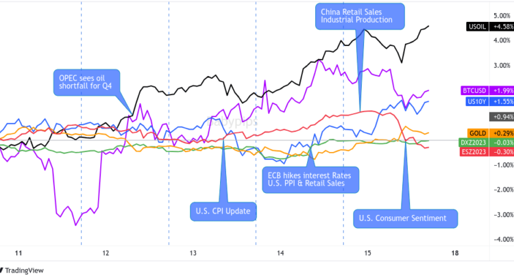 Meanwhile, stronger-than-expected retail sales and PPI reports in the U.S. supported “soft landing” bets and pushed non-European risk assets higher.